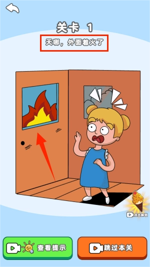 3、外面着火了,你需要用橡皮擦将火苗擦除。