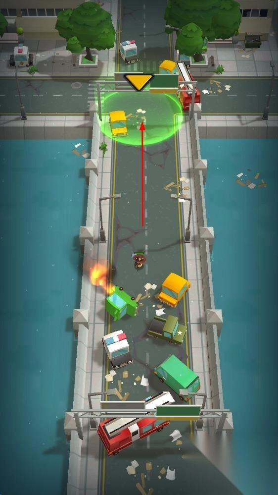 2、当感知范围内出现僵尸时角色会自动攻击,玩家只需操控角色移动躲避攻击,同时解救队友增强火力。