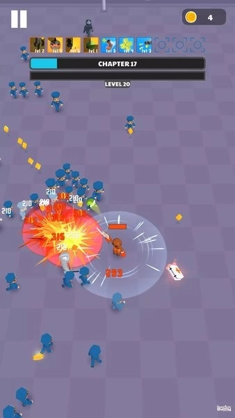 3、每局结束后用金币升级武器基础数值,并平衡加点攻速与暴击率,确保下次开局能更快清怪存活。