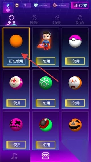 3、在皮肤页挑选橙色球体,自定义设置符合个人喜好的外观。