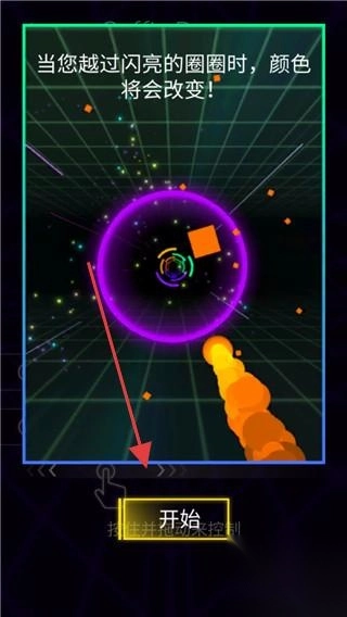 2. 长按屏幕来操控球体,让球体穿过与其颜色相同的闪光圈(穿过圈子后圈子会变色),并依照节奏躲避障碍。