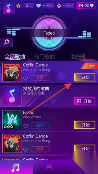 1. 点击“Coffin Dance(专家)”旁边的“开始”按钮,即可进入音乐关卡。