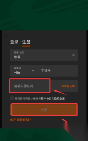 3、勾选用户协议,填写验证码,点击橙色注册按钮完成注册。