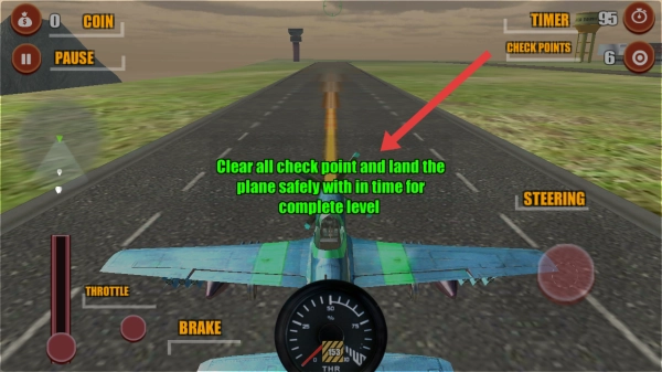 1、在限时内清除所有检查点并安全降落飞机,以此完成本次的关卡挑战,把控时间与飞行目标。