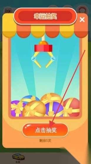 1. 在“幸运抽奖”弹窗中,点击“点击抽奖”按钮,消耗抽奖次数来抽取奖励,进而获取汽车养成所需的资源。