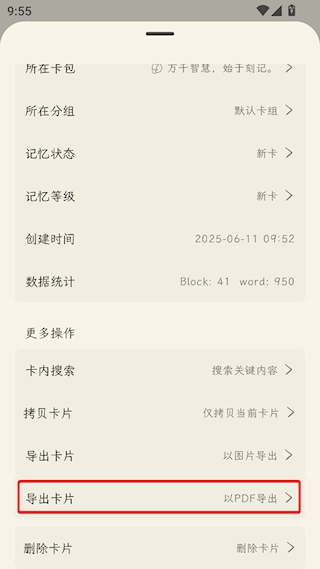 3、进入卡片编辑界面,点击上方的三点,可以导出单个卡片