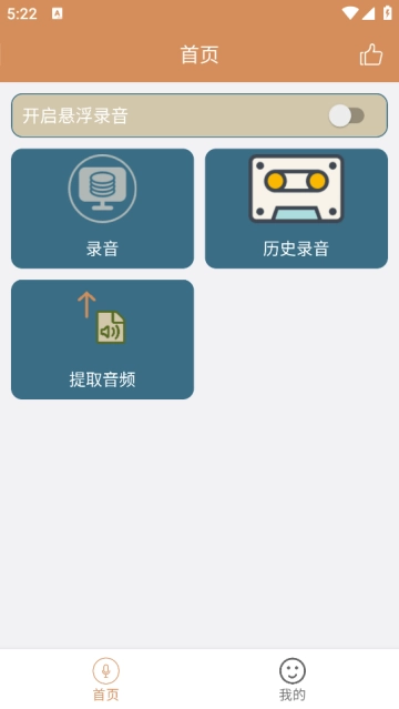 首页具有悬浮录音、提取音频以及历史录音功能查看的功能。