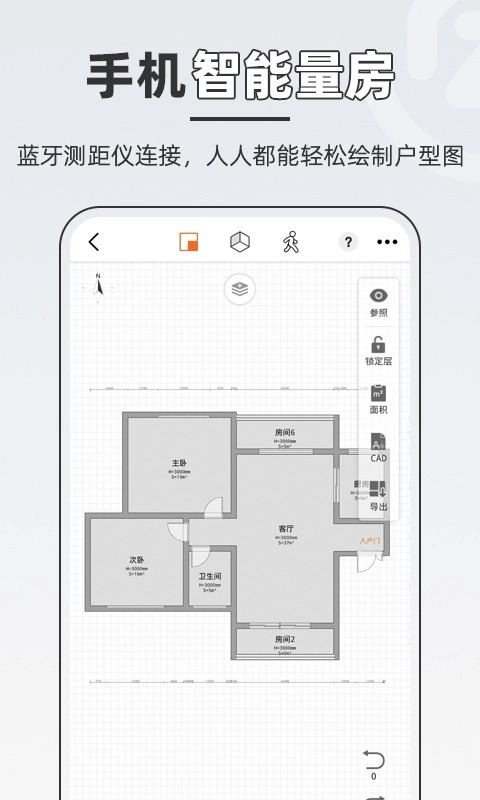 1. 测距仪通过蓝牙连接实现精准量房,具备手机智能量房功能,能快速绘制出3D户型图。
