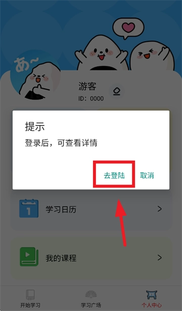 下载安装并打开饭团子日语app,进入后点击个人中心