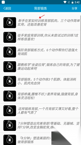 2、点进去会看到一系列健身教学视频,点击自己喜欢的教学视频。