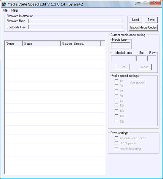 Media Code Speed Edit V1.2.0.10 英文绿色免费版 Media Code Speed Edit是一个光盘刻录机固件编辑器,可以用来编辑刻录机固件(Firmware)的写入策略。它不需要安装,可以直接运行,使用起来很方便,可以在保证刻录品质的前提下提升刻录速度和解决兼容性问题