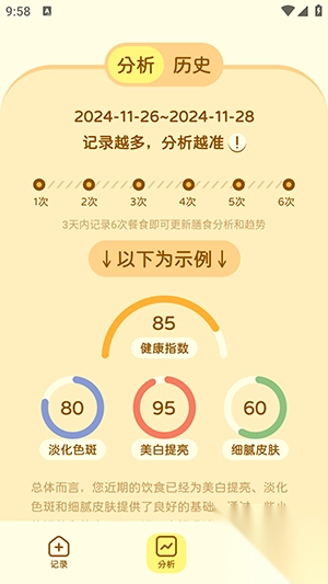 1仅需借助简单的照片、文字以及语音,就能实现饮食记录。
