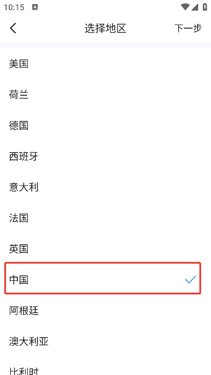 3、这里是需要用户进行一个注册操作的,我们将地区选为中国。
