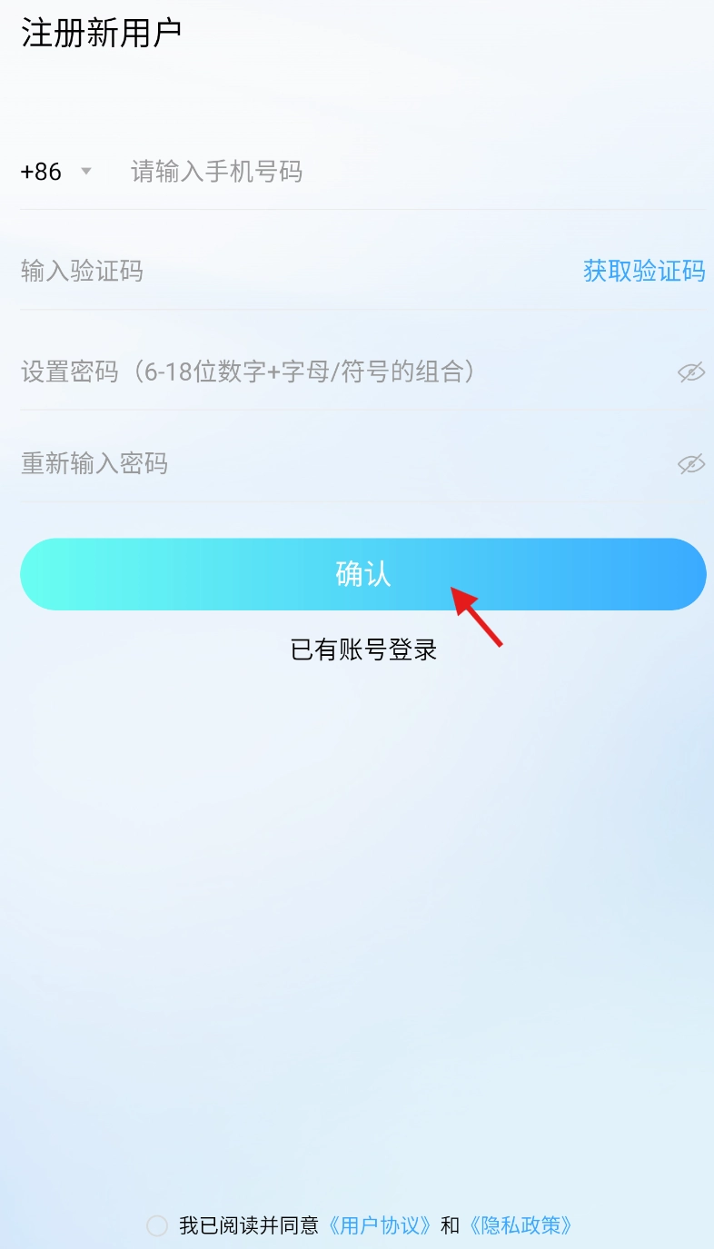 4、在注册界面依次填写各项信息,仔细核对无误后,点击确认按钮完成新用户注册。
