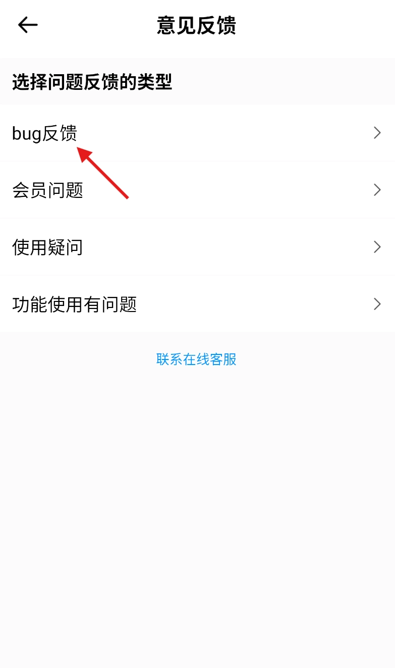 4、在反馈类型选择页面,点击 “bug 反馈” 选项,明确反馈问题的类别。