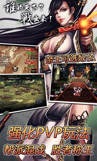 帝王玩法,巅峰对决胜者为王,殿前文武百官跪拜,后宫佳丽万千等你宠爱。