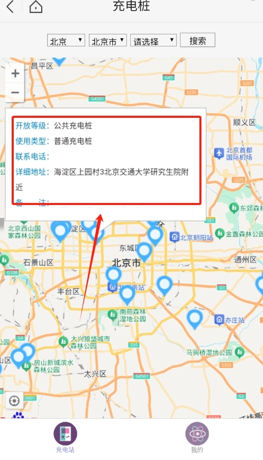 3、 找到想要了解的蓝色图标,点击一下就能看到这个充电桩的详细信息,很方便。
