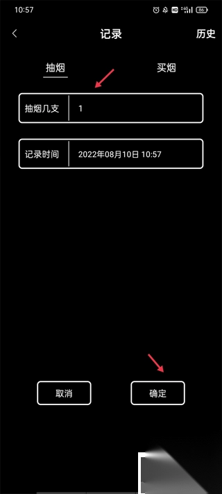 2. 填入抽烟的数量与时间,而后点击“确定”。