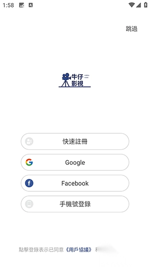 1、打开软件后,会显示登录注册页面,也可以直接点击右上角跳过。