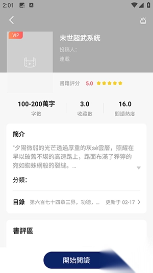 2、点击感兴趣的小说,在详情页面中,点击开始阅读。