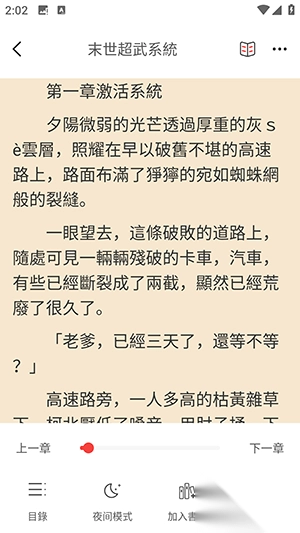 3、阅读界面点击一下屏幕,会显示功能页面。