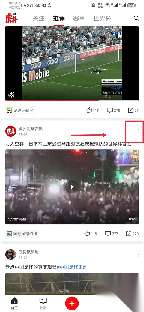 1、在推荐界面中找到你不感兴趣的内容,并点击该内容的右上角三个点