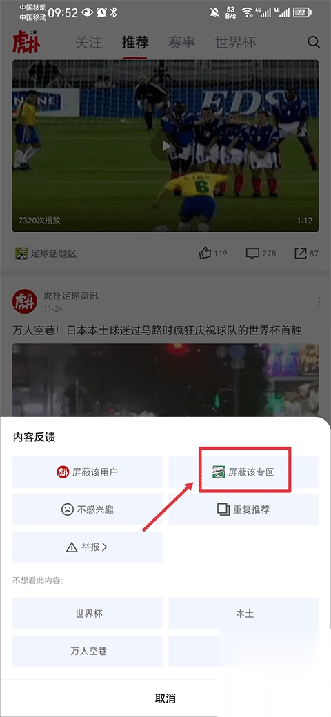 虎扑app怎么屏蔽专区