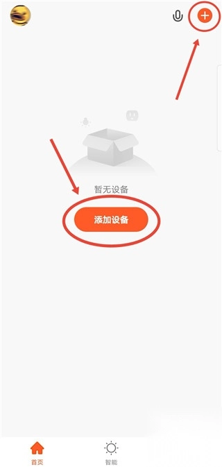 1. 这里以添加“ss190”智能音箱为例。您第一步要注册并登录该软件,接着点击添加设备或者右上角的“+”符号。
