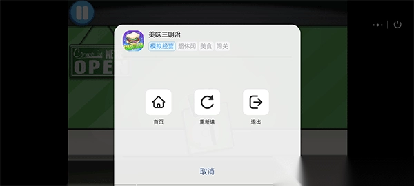 4、在玩游戏界面点击右上角“…”可以进行返回首页、重新进入、退出等操作。