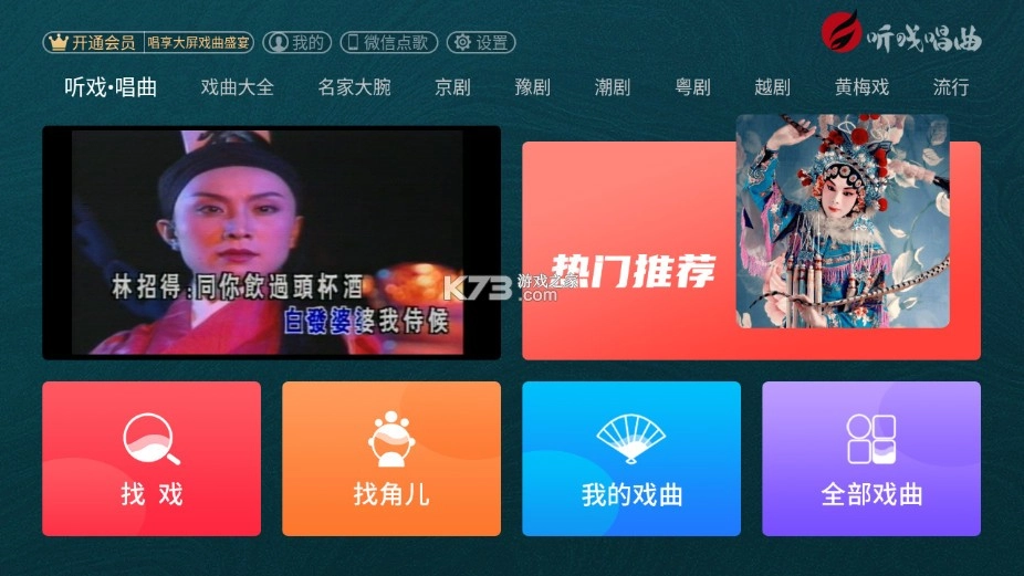 听戏唱曲,是一款整合了看戏、听戏与唱戏功能的家庭电视应用程序。该应用精心汇聚了京剧、越剧、豫剧、评剧、黄梅戏、粤剧、潮剧等20余种全国地方戏曲的优质资源。不仅如此,应用的曲库还收纳了戏曲融合经典红歌、经典老歌等多元丰富的内容。其核心目标在于弘扬传统文化,传承戏曲这一国粹,让广大用户能够借助电视大屏,领略戏曲的独特魅力与中国传统文化的深厚底蕴。