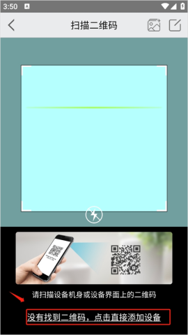然后在弹出的页面里,如果找不到二维码,别急,直接点击“这里”手动添加设备即可。