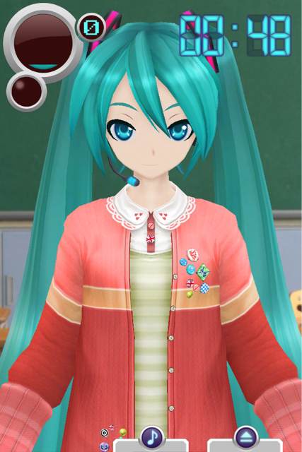 初音未来安卓版虽然是个音乐播放器但是却糅杂了很多其他的功能,比如你在播放音乐时可以看着初音和你一起享受音乐跟着旋律欢乐摇摆。你还可以给初音更换衣服和耳机,免费衣服有两件,还有两种免费的耳机可以更换,还有两套免费的头发可以更换。比起丰富的自定义功能,原本的音乐播放功能就有点略鸡肋了。初音未来游戏可以识别出设备上的音乐文件,但是不支持播放列表,也就是说你每次打开软件都必须重新选择一次本次需要播放的歌曲。软件支持播放,暂停,音量调节,进度调节,循环模式,上下曲等功能。