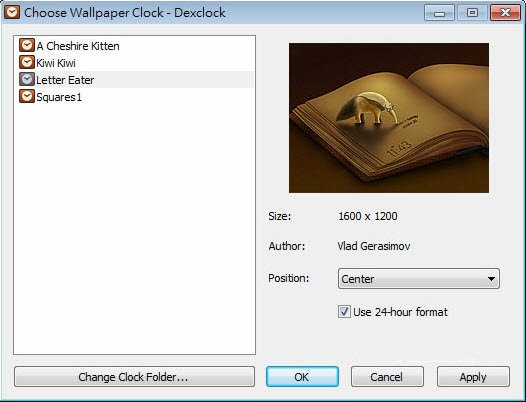 Dexclock是一款国外非常流行的电脑桌面时钟软件,可时时跟新,可在桌面上显示漂亮的艺术壁纸,壁纸上的时钟能够动态更新,这样不会占用你桌面上的任何空间。软件仅需要极少的内存资源。