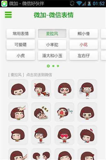 5、个性表情:逢年过节祝福,短信已经out了,微加可以把你的祝福变成个性祝福表情发给微信好友,让你的朋友们惊羡吧!