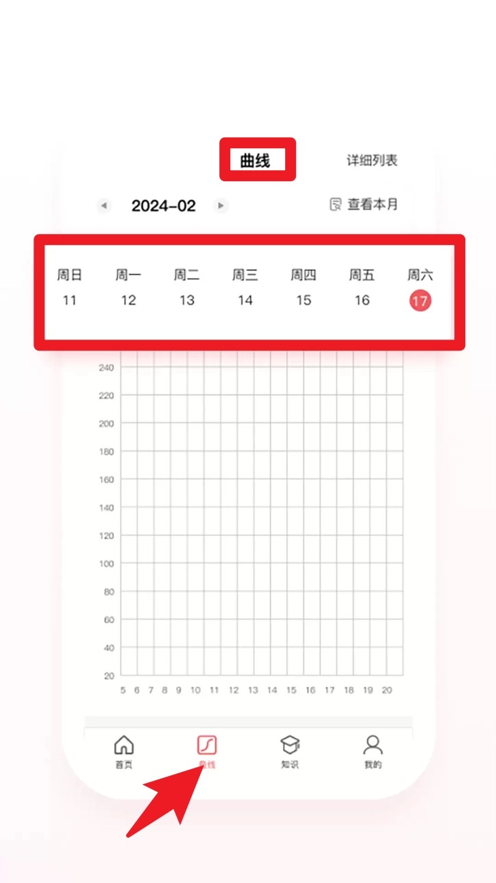 3. 轻点底部的“曲线”标签页,就能依据日期查看各项健康数据的趋势图以及历史记录。
