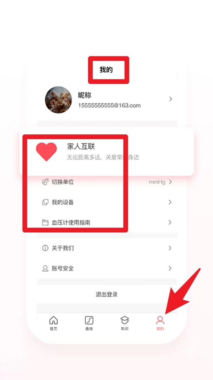 4. 进入“我的”页面,点击“家人互联”选项,即可对亲属账号进行设置,实现健康数据共享,达成远程关注的目的。