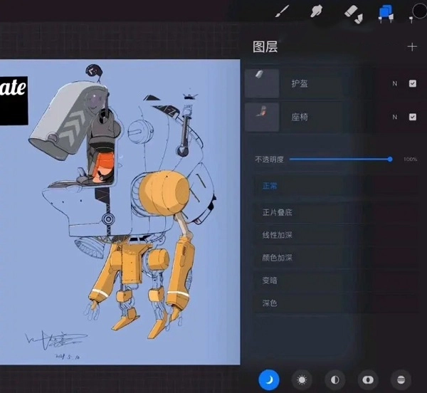 2、Procreate有丰富的图层并支持不同的图层叠加样式。PS常用的正片叠底啥的都支持,这在插画软件中很难得。另外图层锁定功能也很实用。举个例子,你在一个图层画了个实心圆,然后锁定图层,之后你在该图层画的内容就被限制在这个实心圆里了。这个功能在细节刻画的时候不会影响到其它区域,十分方便。