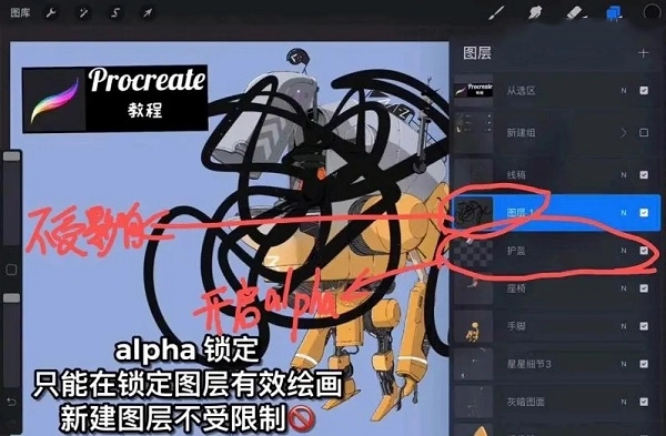 alpha锁定,与图层锁定不一样,可以图层绘画修改。