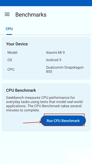 2、打开应用程序并点击 "Run Benchmarks" 按钮