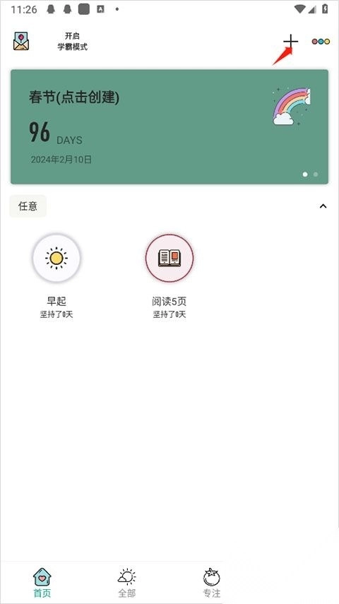 1. 第一步,打开小习惯app最新版本,点击页面上方的加号。