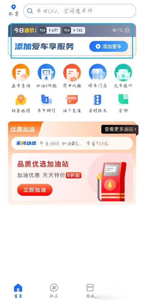 2、点击添加爱车。