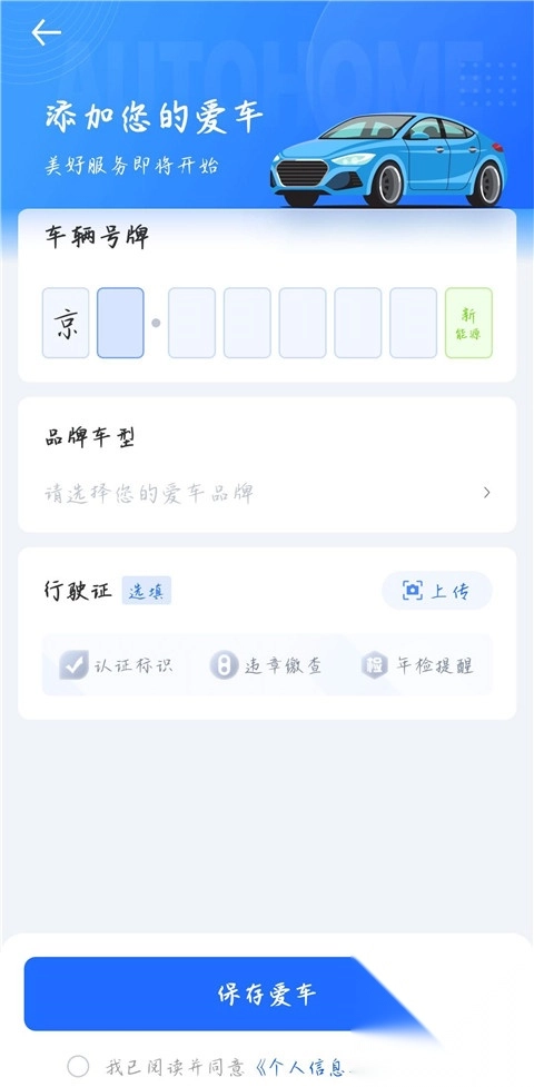 3、填写车辆的车牌号以及车型。