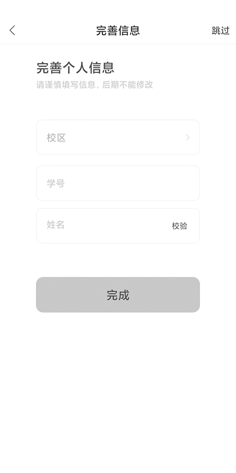 2、注册完成后登录,选择学校,填写学号、姓名等即可。