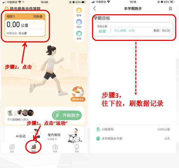 1、早上起床后跑一圈校园,轻松完成每日任务;