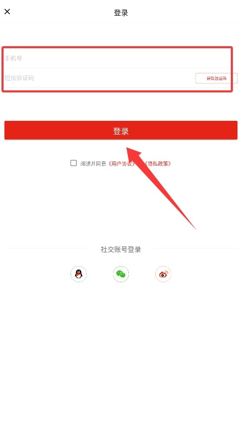 2、在登录页面选择手机号接收验证码快速登录,或使用微信、QQ等第三方账号直接授权登录。
