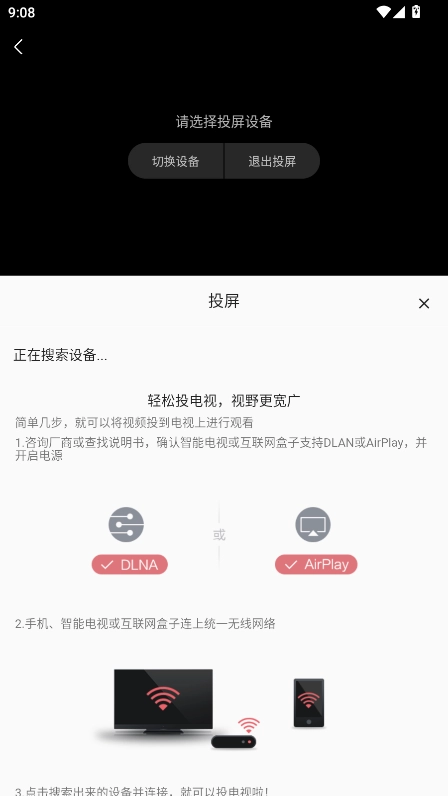 3. 开启电视,让手机与电视接入同一WiFi网络,接着点击搜索到的设备进行连接,如此便能实现投屏到电视。