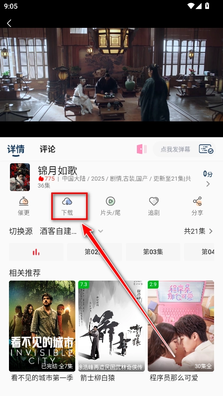 3.按照软件的提示先注册登录,然后在新的界面点击我们想要的集数即可。