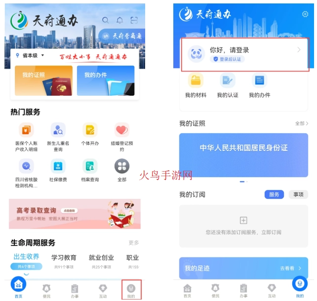 下载“天府通办”APP 后,点击“我的”进入登录页面。