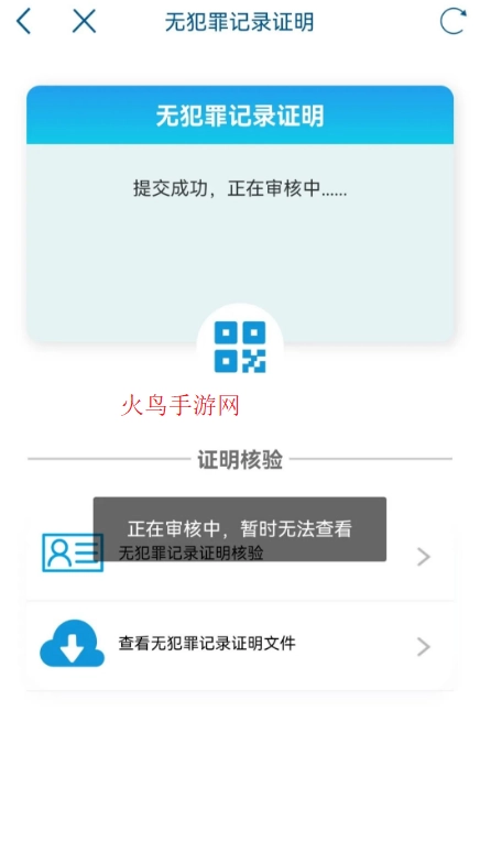 提交完成后,系统提示“提交成功,正在审核中......”(正在申请中的证明二维码暂时不可点击)