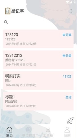 1. 开启星记事,在首页能够瞧见自己记录的所有内容,接着点击右上角的按钮。
